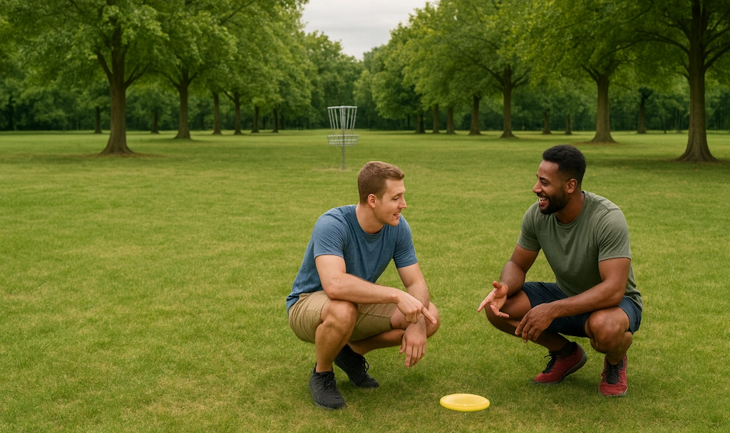 Det er noe spesielt med å spille discgolf første gang med andre spillere. Kanskje du har øvd litt alene, kastet noen discer i parken, og føler deg klar til å prøve en skikkelig runde. Men så: Hva hvis jeg ikke kan reglene? Hva hvis jeg gjør noe galt og alle ser på meg? Hva hvis jeg forsinker andre spillere?